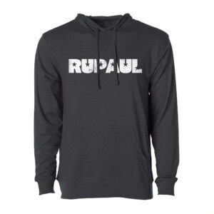 Charcoal cotton lightweight pullover t-shirt hoodie with RuPaul star logo front print.